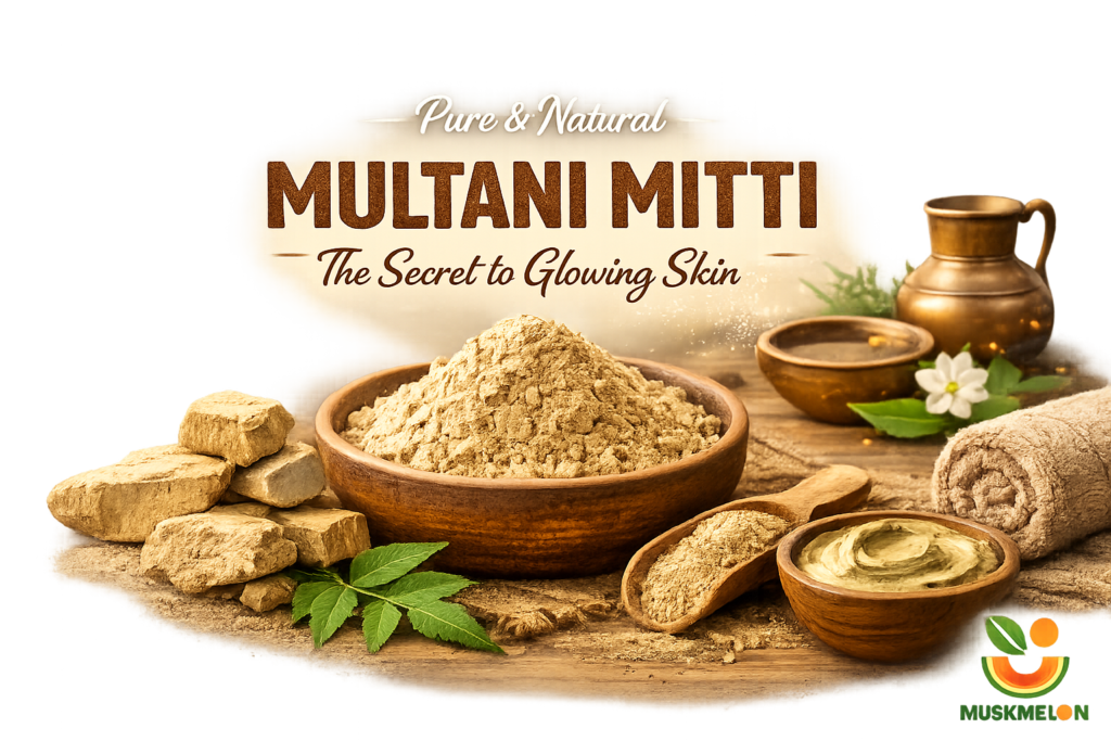 Muskmelon Multani Mitti is a 100% natural and pure clay known for its powerful skin-cleansing and oil-absorbing properties. Traditionally used for centuries in natural skincare, Multani Mitti helps remove excess oil, dirt, and impurities from the skin, leaving it fresh, smooth, and naturally glowing.